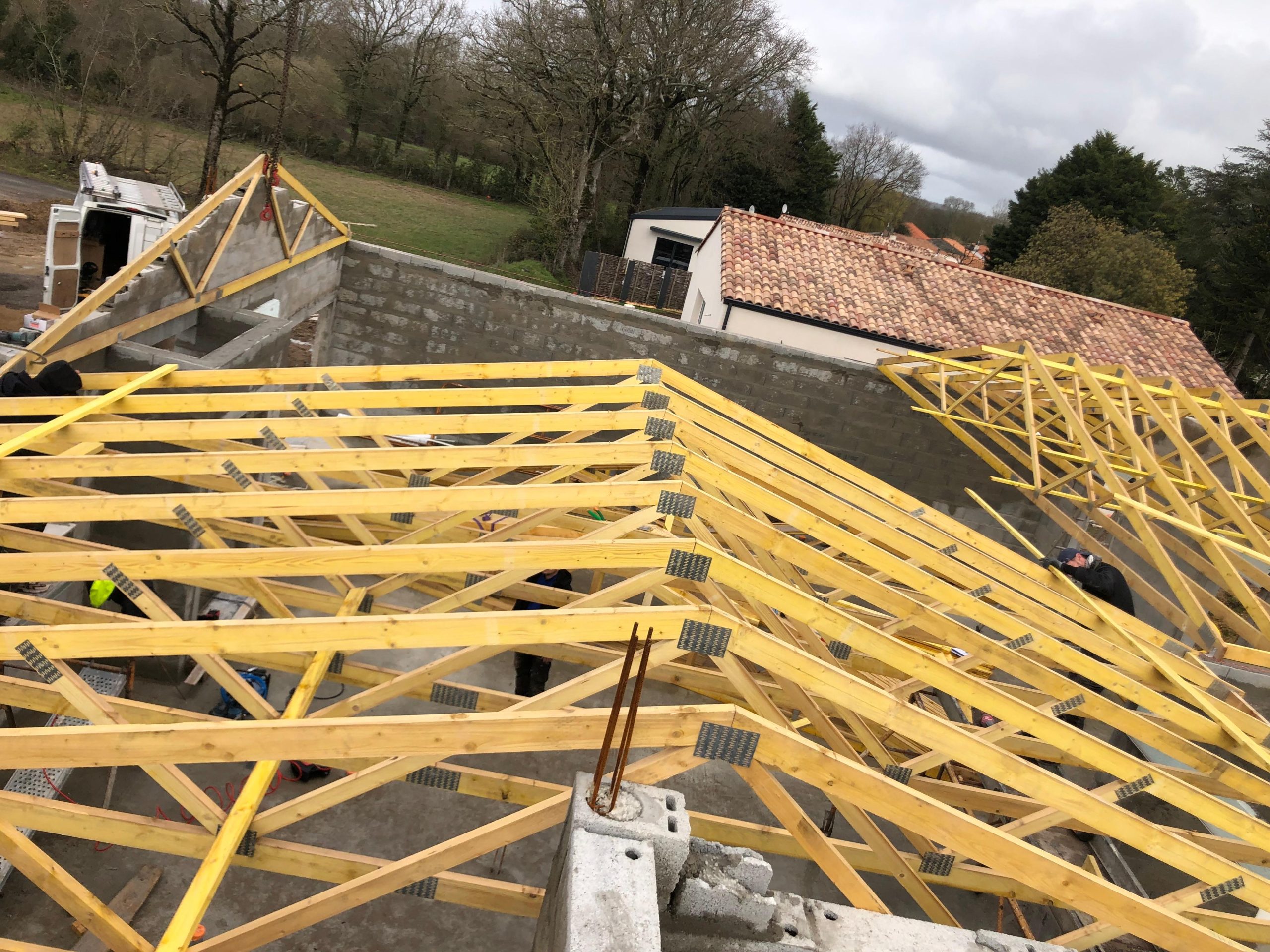 Création, rénovation et renforcement de charpentes bois traditionnelles ou industrielles. Une structure saine et solide est essentielle pour assurer la longévité et la sécurité de votre toiture.